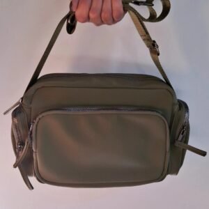 $2.700Añadir al carritoMedida aprox. 25 x 14 cm. Fuelle 10 cm. Correa larga regulable. Bolsillos exteriores e interiores.